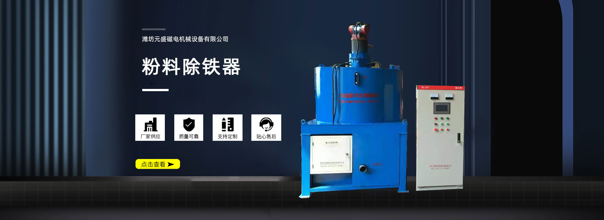 濰坊元盛磁電機械設備有限公司致力于金屬探測、磁選、除鐵、微機計量、微機控制技術的研究和開發(fā),并已形成系列產(chǎn)品。主要產(chǎn)品有:各種型號的金屬探測儀, 電振機,電磁除鐵器、永磁除鐵器,磁選機,輸送機,微機計量設備,水泥微機配料、預加水成球系統(tǒng)等。產(chǎn)品廣泛用于建材、化工、冶金、礦山、玻璃、陶瓷、糧食、食品等行業(yè),…… “質(zhì)量良好、信譽良好、用戶良好”是本廠的經(jīng)營宗旨,我廠竭誠歡迎各地用戶蒞臨考察,洽談業(yè)務。